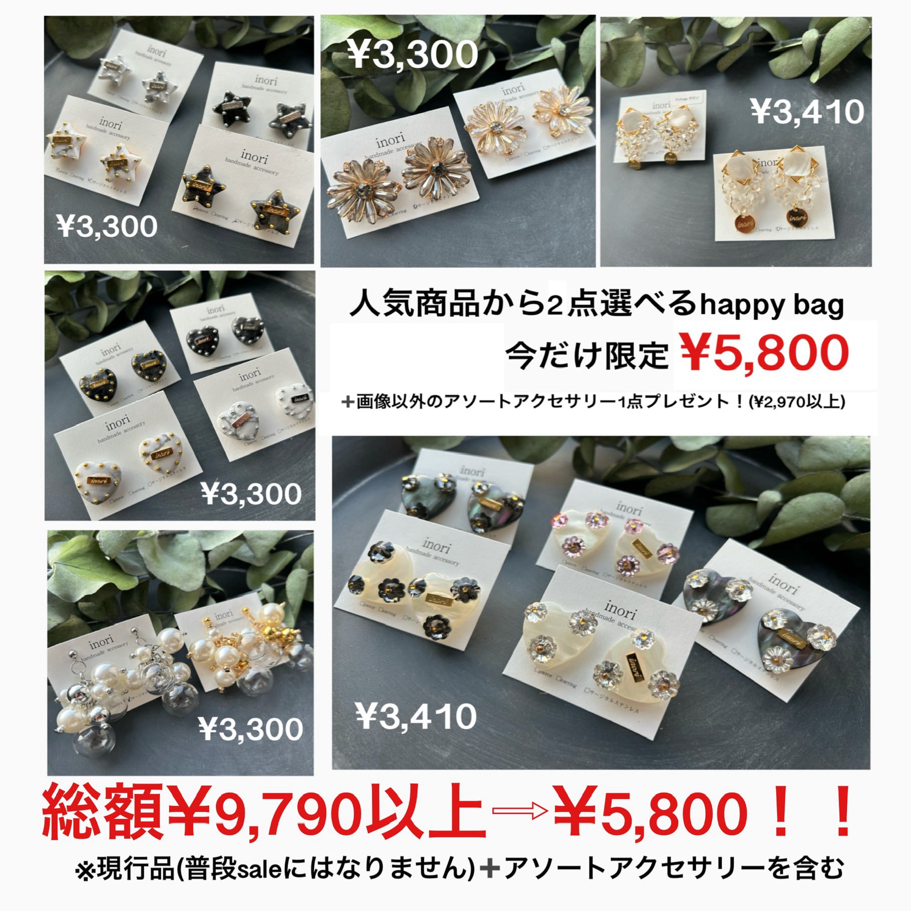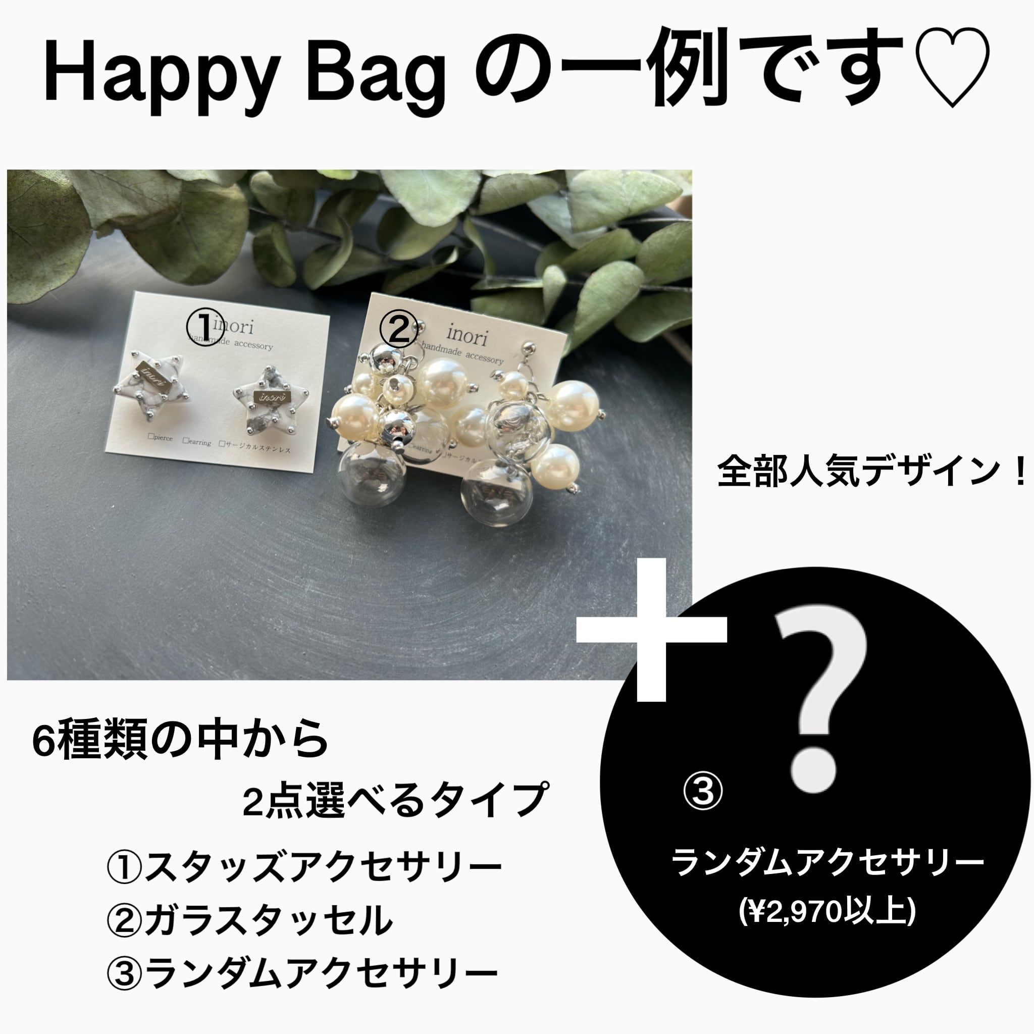 HAPPYBAGも欲しいけど「何が入っているか分からない」や「SALEじゃないアクセサリーも気になる」などのご希望にお応えして、プロパー(SALE対象外商品)の中から人気の商品をお好きなアクセサリーを3つ選べるセットを作りました♡