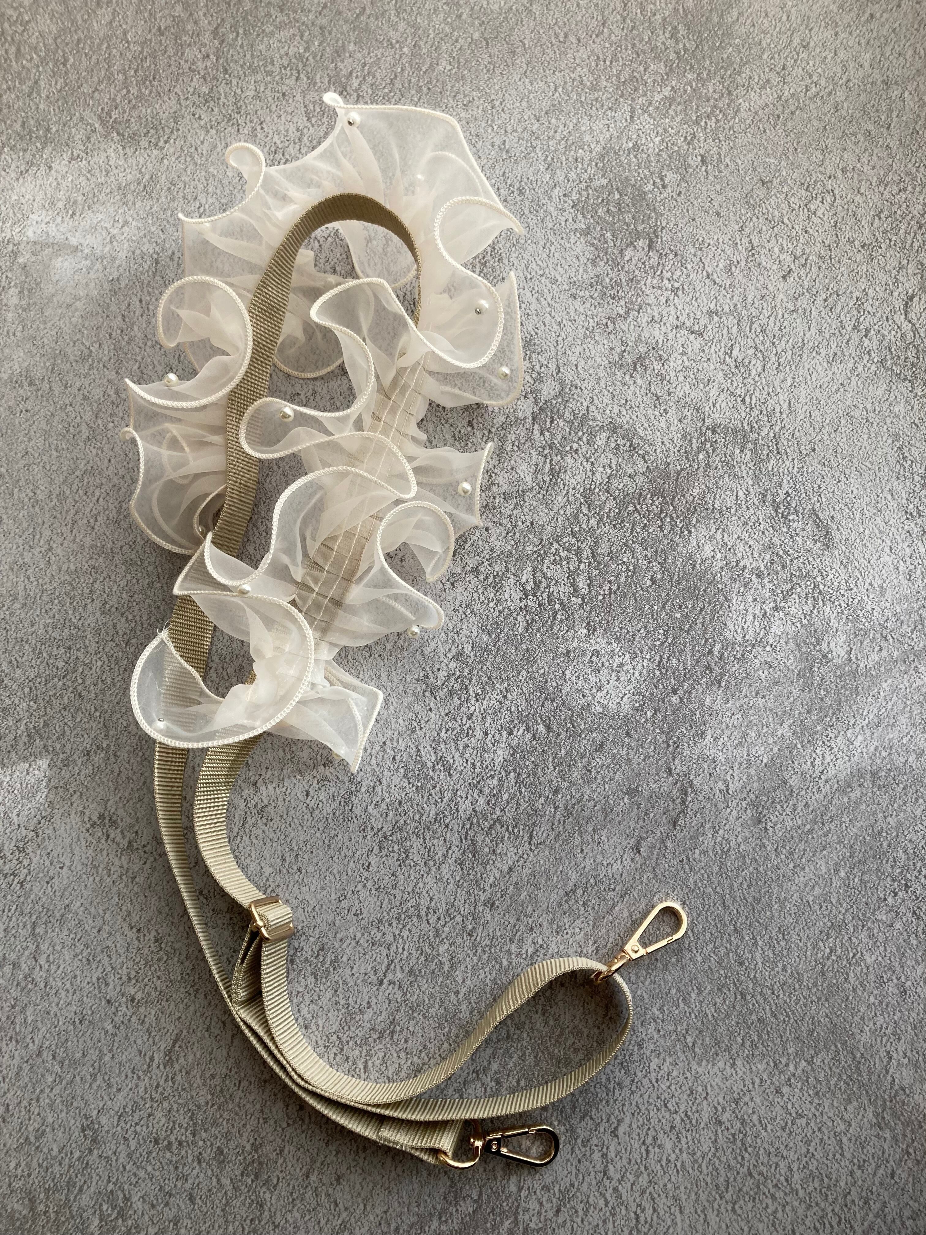 フリル(アイボリー)パール×ベージュ紐ショルダー