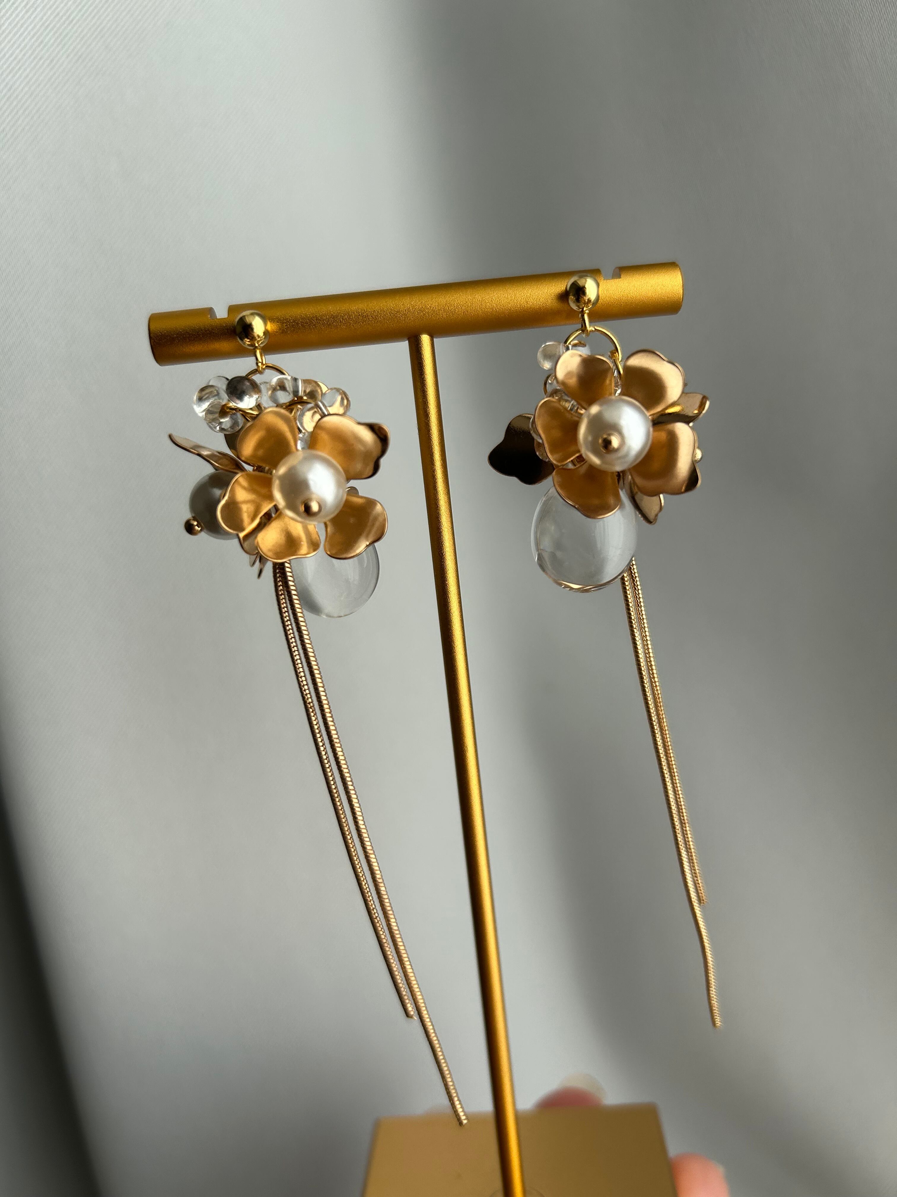 ゴールドの可愛いminiフラワーとチェーンをmixした女性らしいデザイン。。